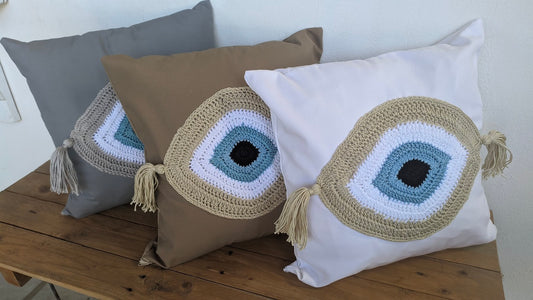 Crochet Evil Eye Cover Cushion - Greek Gift - House ornament