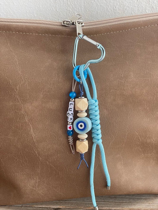 Baby Blue Evil Eye Bag charm & Keychain – Handmade Protection Charm