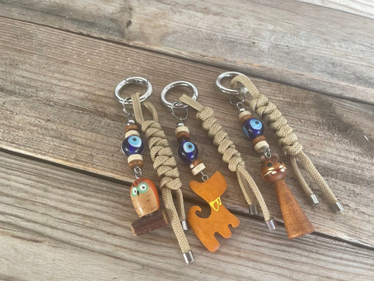Wooden Evil Eye Animal Bag Charm - Cat, Dog & Owl