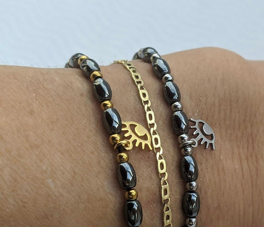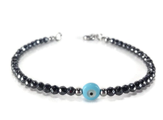 Evil Eye Hematite Bracelet - Greek Evil Eye Bracelet - Gift for Her