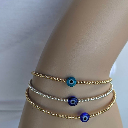 Evil Eye Beaded Bracelet - Women's Protection - Sterling S./Gold Filled