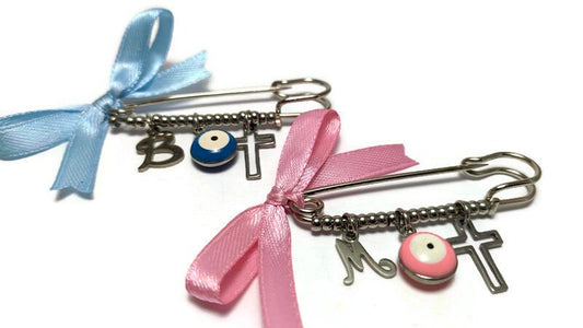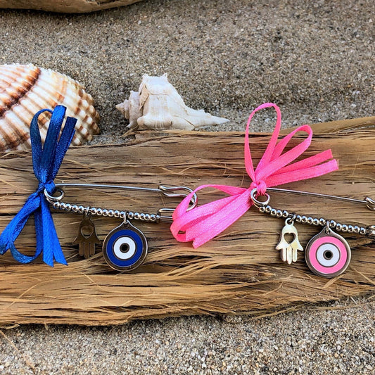 Personalized Evil Eye Safety Pin - Baby Protection - Available in pink & blue