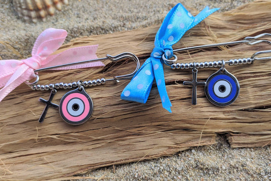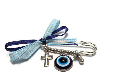 Evil Eye Cross Safety Pin - Baby Protection - Baby Gift
