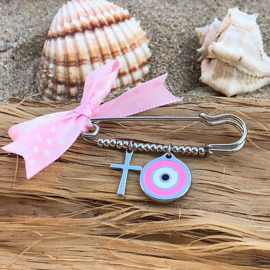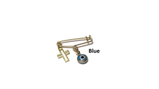 Evil Eye Cross Safety Pin - Baby Protection jewelry - New Born Gift