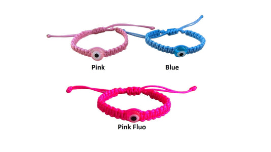 Evil Eye Macrame Baby Bracelet - New Born Gift - Pink, Blue & Fluo pink
