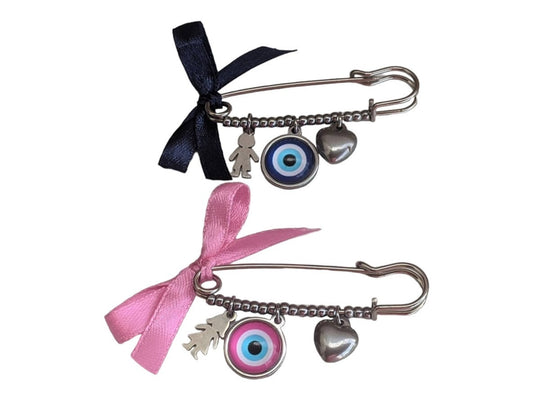 Dark Blue or Pink Evil Eye Safety Pin - Baby Evil Eye Protection