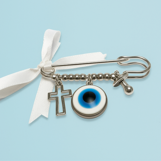 Evil Eye Cross Safety Pin - Baby Protection Jewelry