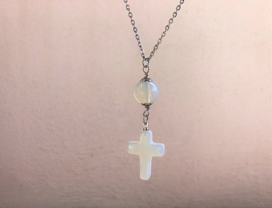 Moonstone Cross Car Mirror Charm - Car Accessories