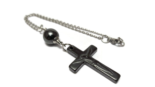 Cross Mirror Charm - Hematite Christian Cross Pendant - Car Decoration