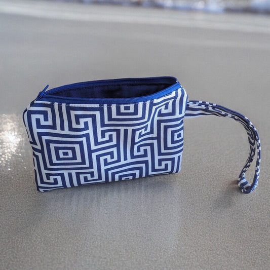 Greek Key Pouch - Blue & White Cotton bag - Greek gift