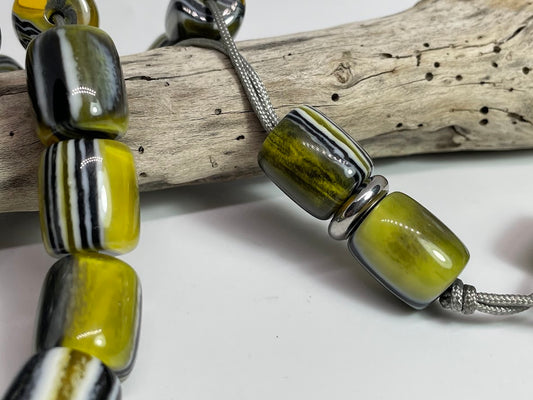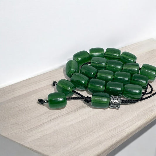 Green Worry Beads With White & Black Stripes - Greek Gift - Gift for Him