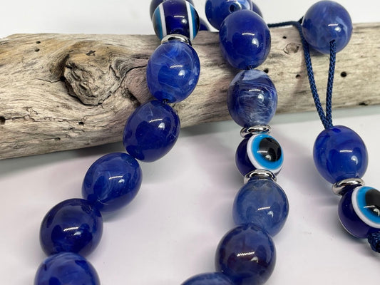 Dark Blue Evil Eye Worry Beads – Greek Gift – Relaxing Beads – Blue Komboloi