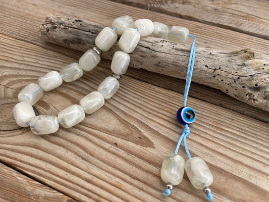 White Off Worry Beads - Evil Eye Worry Beads - Greek Passtime