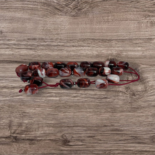 Dark Red White Worry Beads – Greek Gift – Anti Stress Toy – Red Komboloi