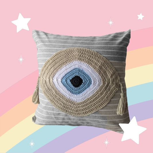 Handmade Evil Eye Cover Cushion - House Ornament - Crochet Pillow Cover