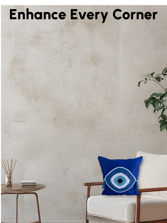 Royal Blue Evil Eye Cushion Cover – Greek-Inspired Home Decor
