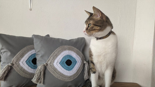 Crochet Evil Eye Cover Cushion - Greek Gift - House ornament