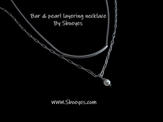 Tube & Swarovski Pearl Layering Necklace - Stainless Jewelry - Gift for Her