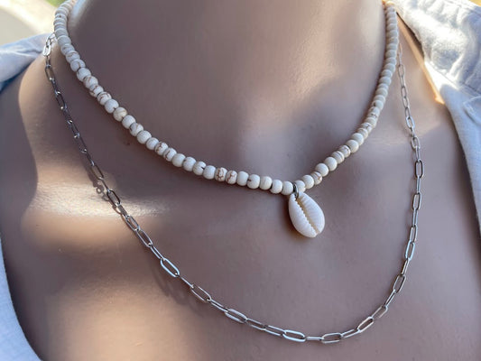 Cowrie & Howlite Beaded Necklace - Gift for Her
