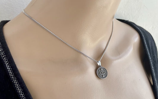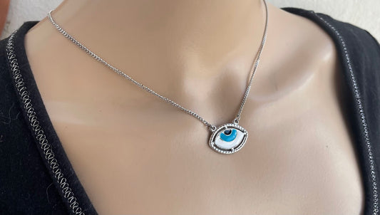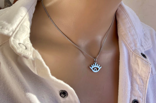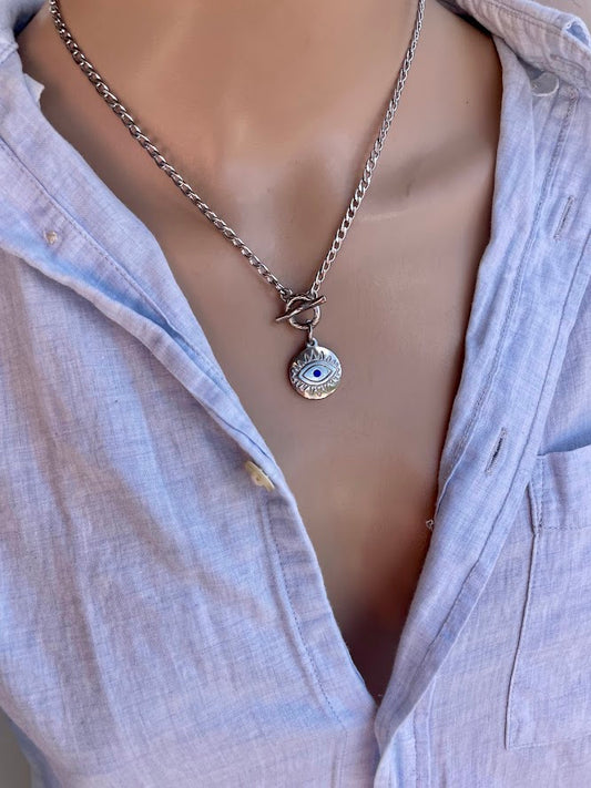Stainless Steel Evil Eye Necklace - Gift For Her - Greek Gift