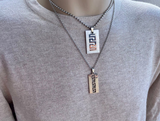 Greek Key Pendant for Mens - Stainless Steel Jewelry - Gift for Him