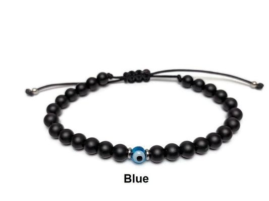 Bracelet Onyx Oeil Bleu Réglable - Cadeau pour elle ou pour lui
