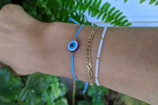 Bracelet Perles Rocailles Oeil Bleu - Minimaliste -