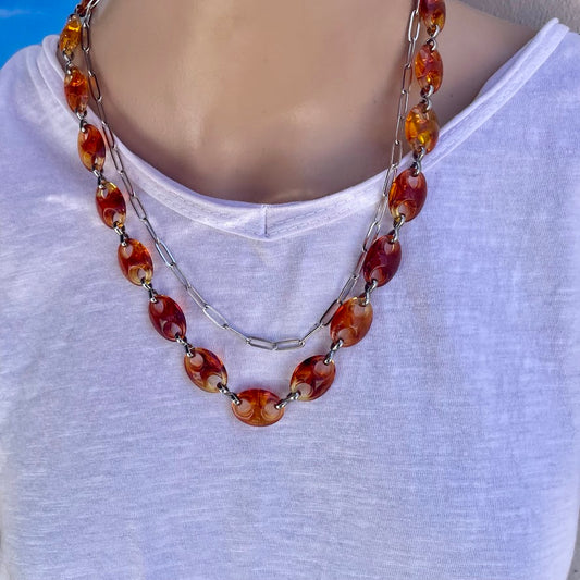 Collier Soleil Chaîne Figaro en Acier Inoxydable