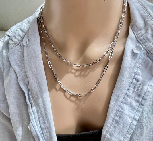 Collier Coeur Chaine Figaro en Acier Pour Femme