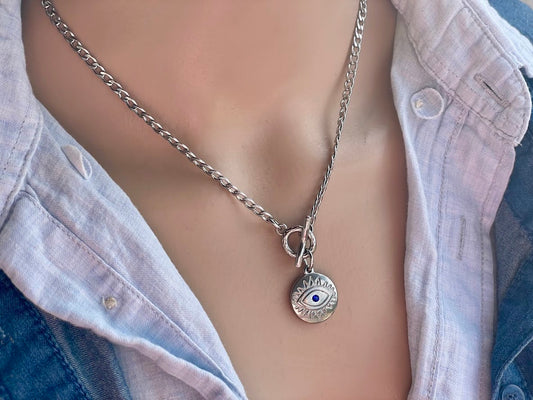 Pendentif Oeil en Acier Inoxydable - Porte Bonheur Unisex -