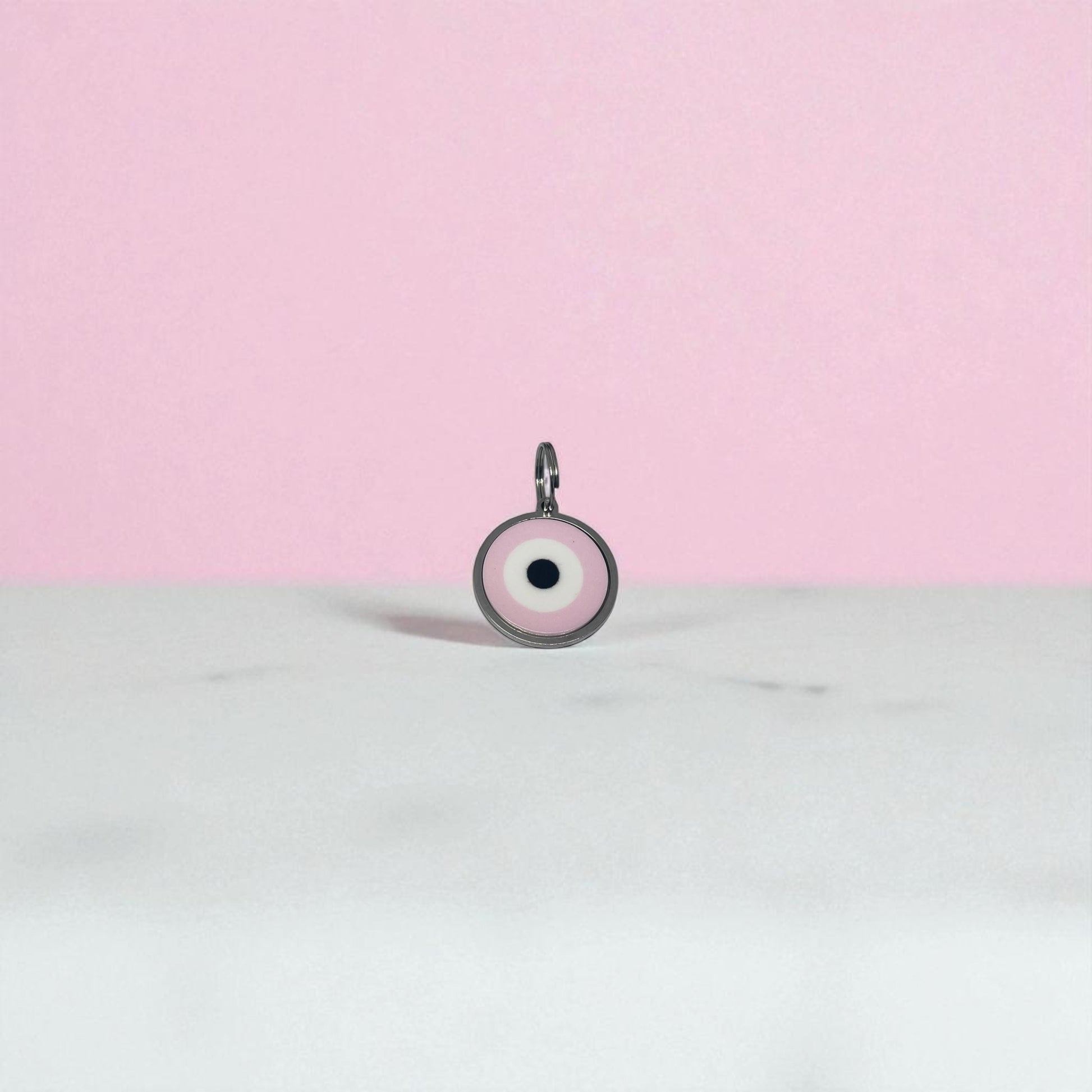 Ce pendentif est composé d’un œil en acrylique rose ou bleu pastel monté dans une base en acier inoxydable hypoallergénique, solide et durable.