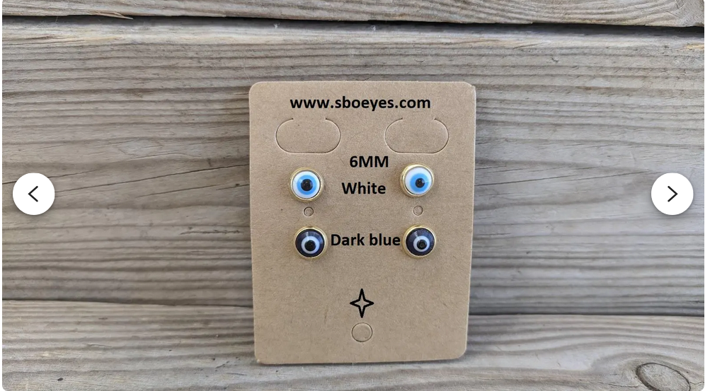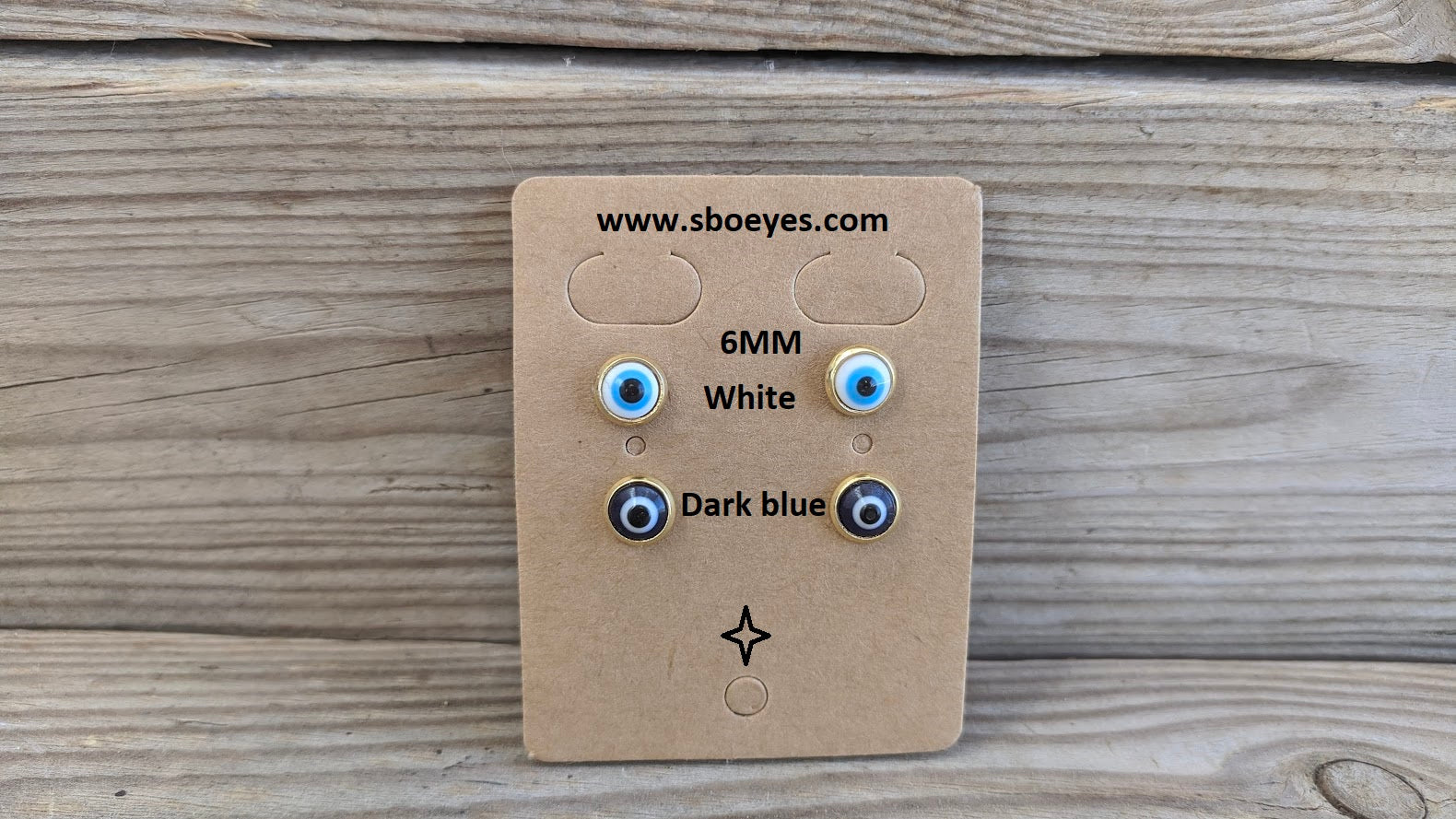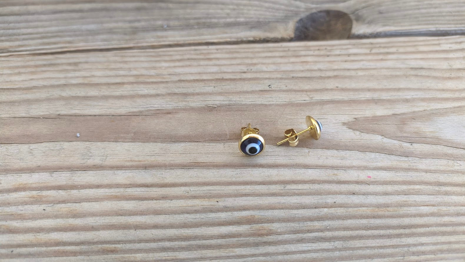 Boucles d'Oreilles Clous Oeil Blanc acier doré