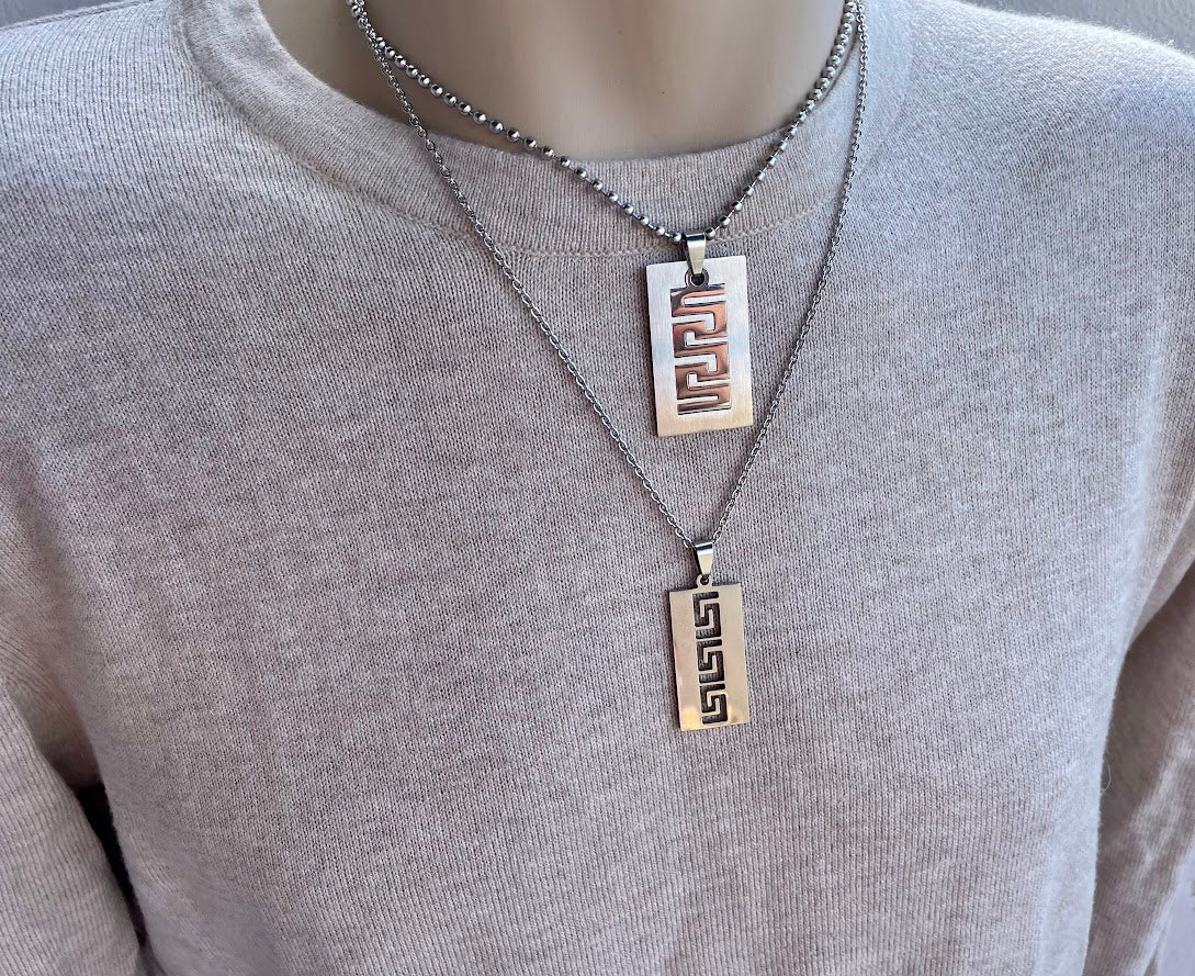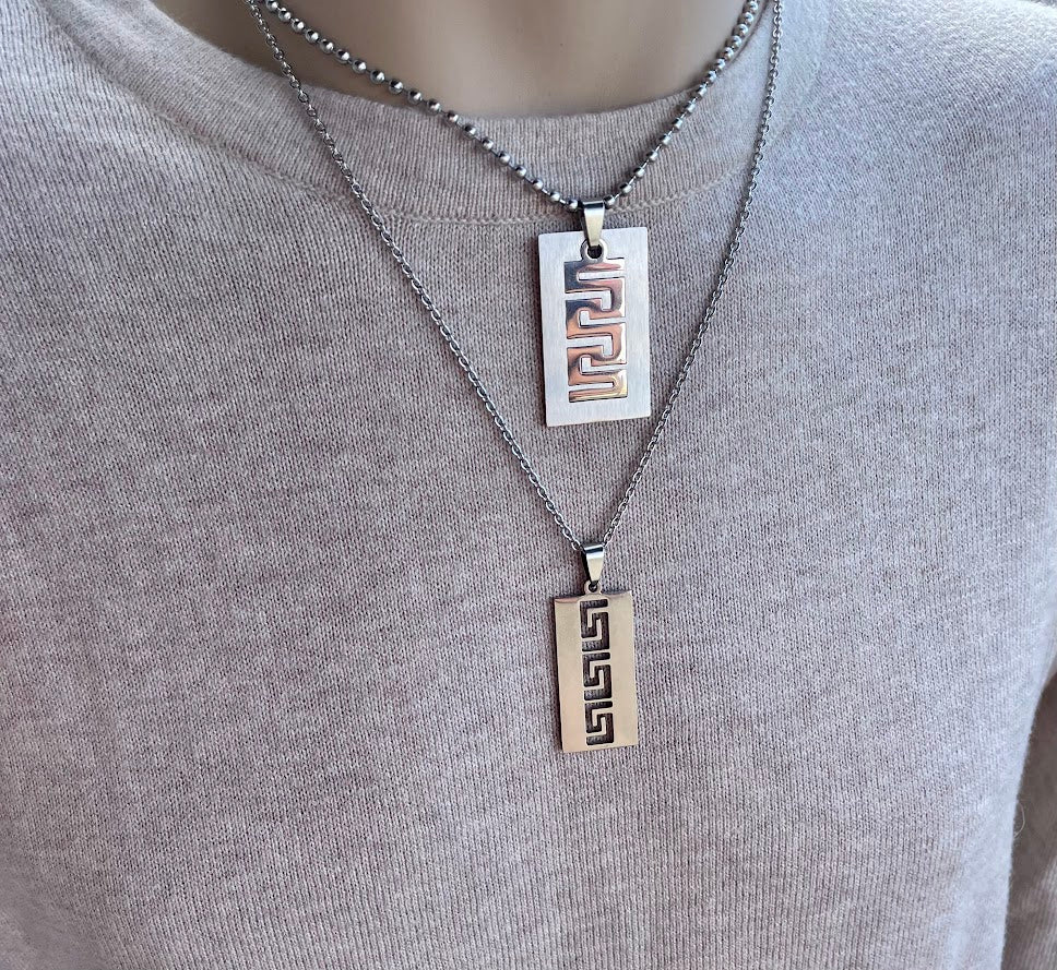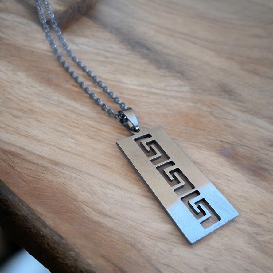 Pendentif Motif Grec Pour Homme en Acier Inoxydable