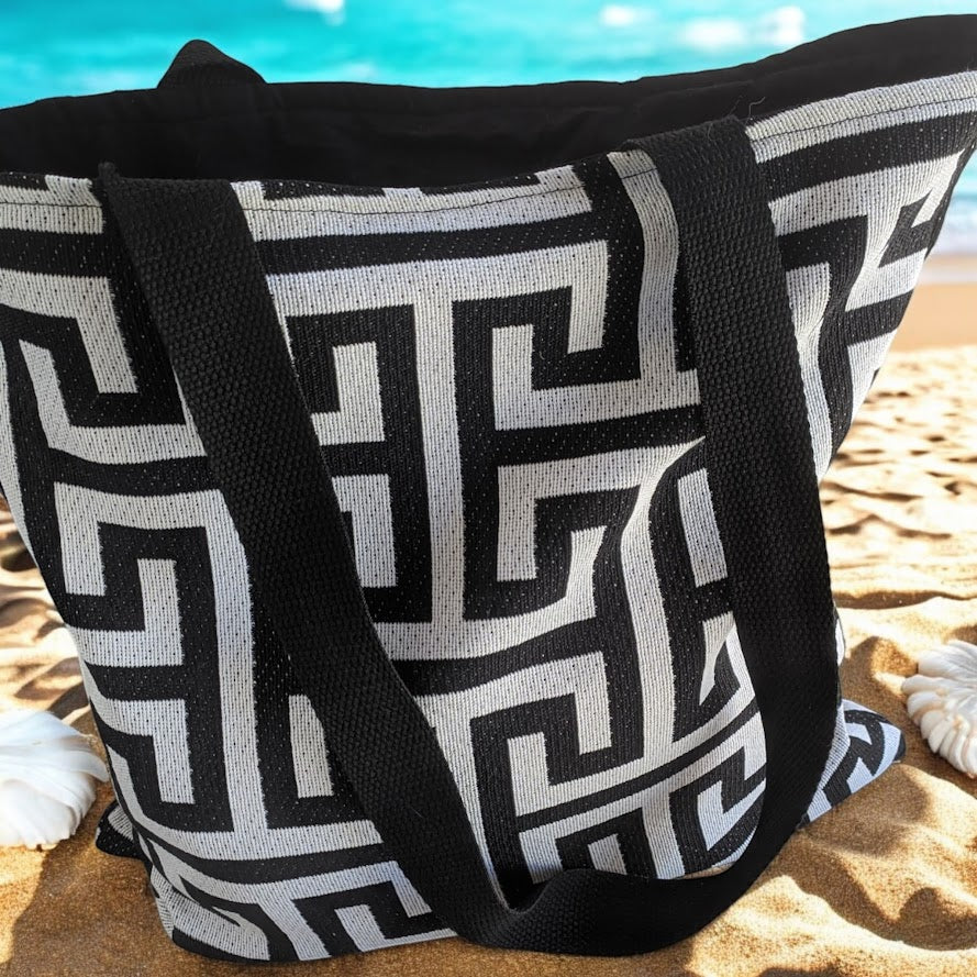 Sac Fourre Tout Motif Grec Noir - Totebag