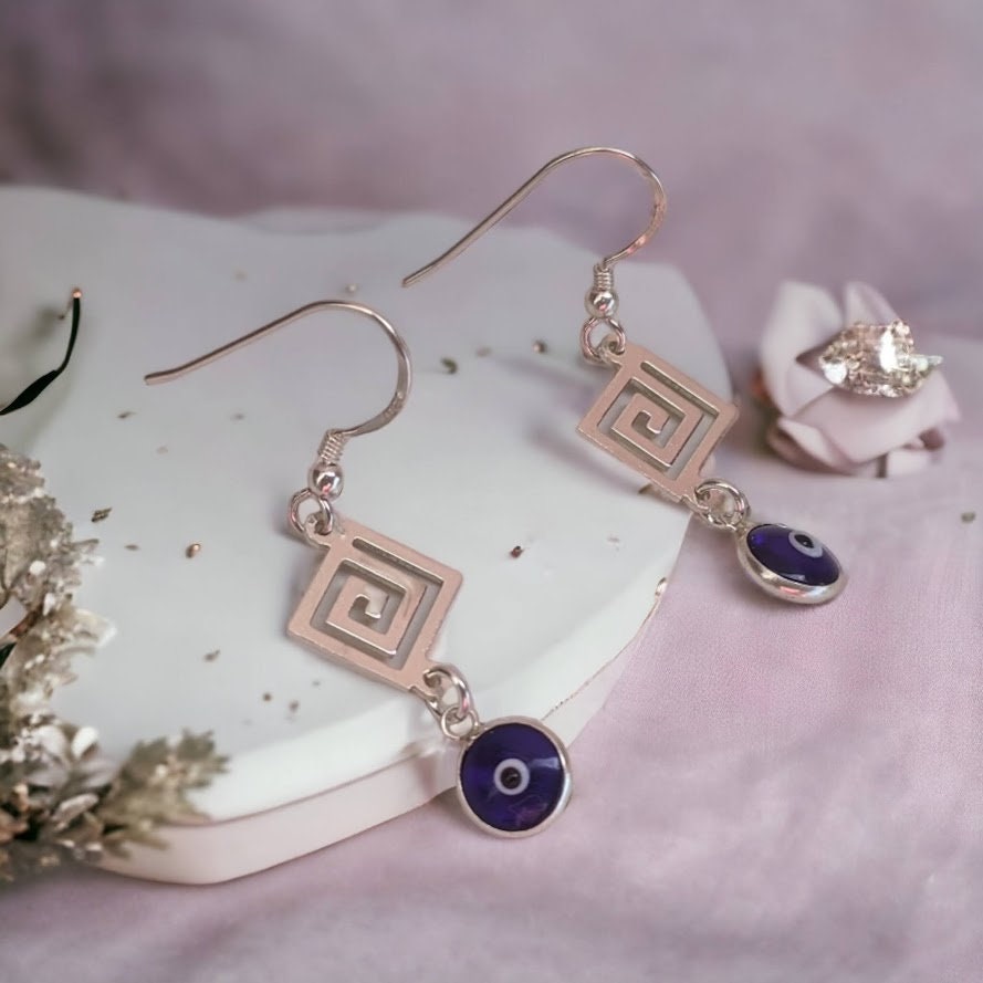 Jolies boucles d'oreilles au Design Grec en argent massif.