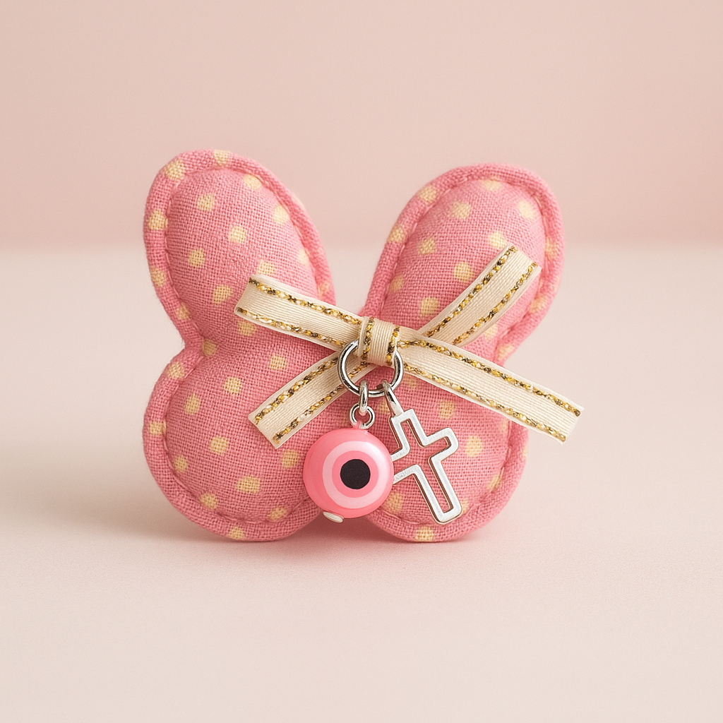 Pink baby girl evil eye rabbit safety pin