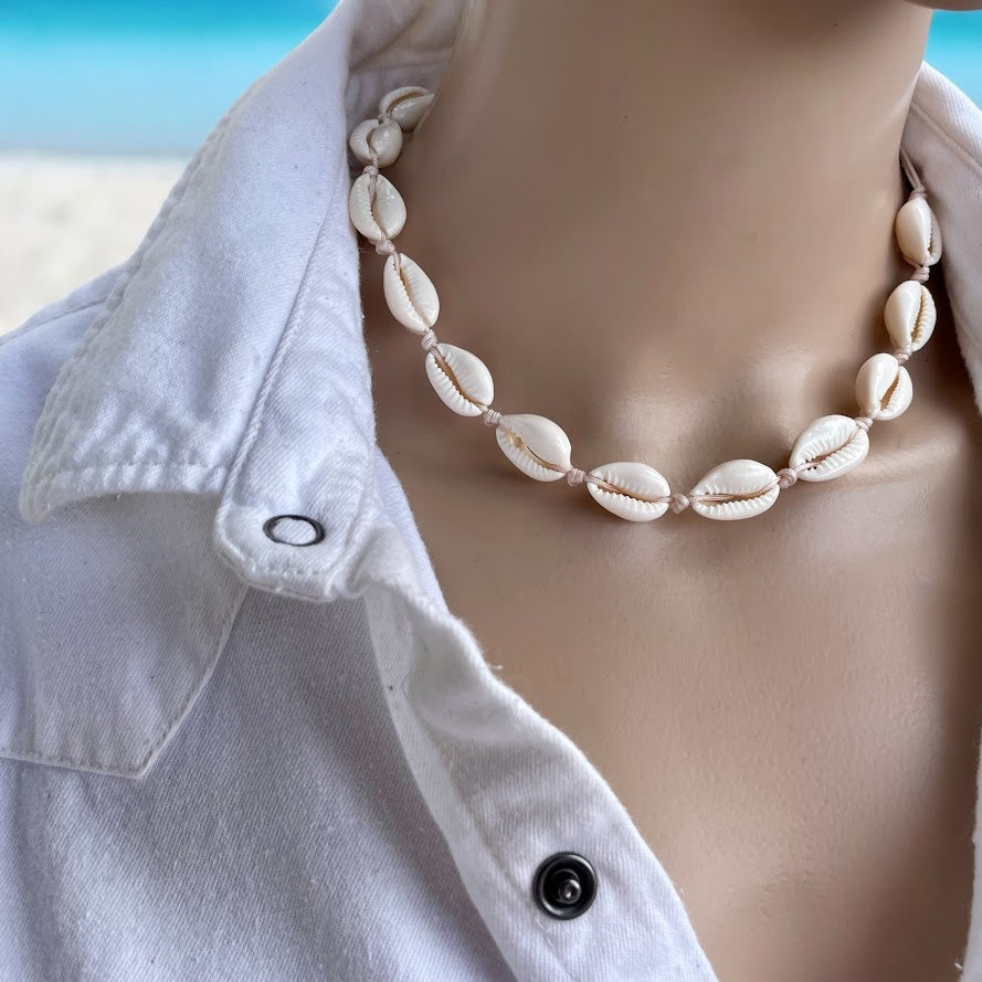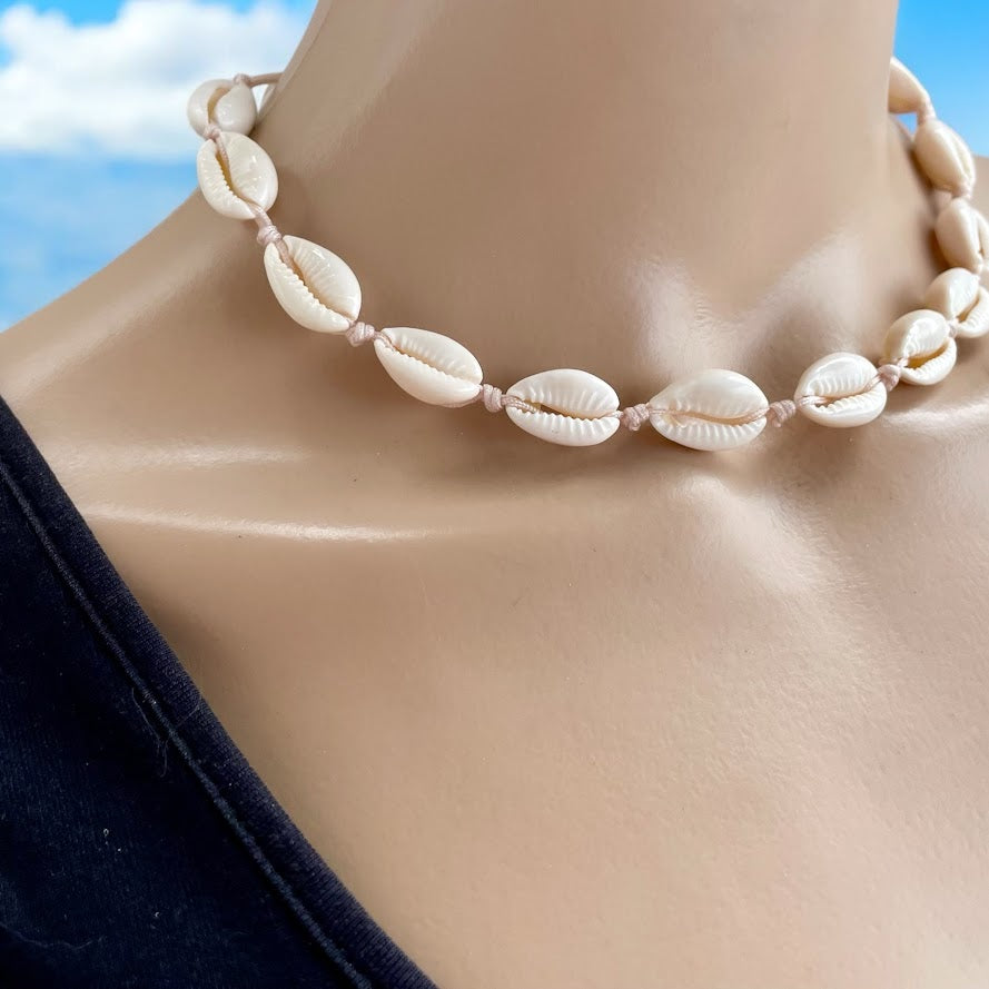 Cowrie Shell Necklace - Beach Shell Choker - Gift for Her - Adjustable Necklace