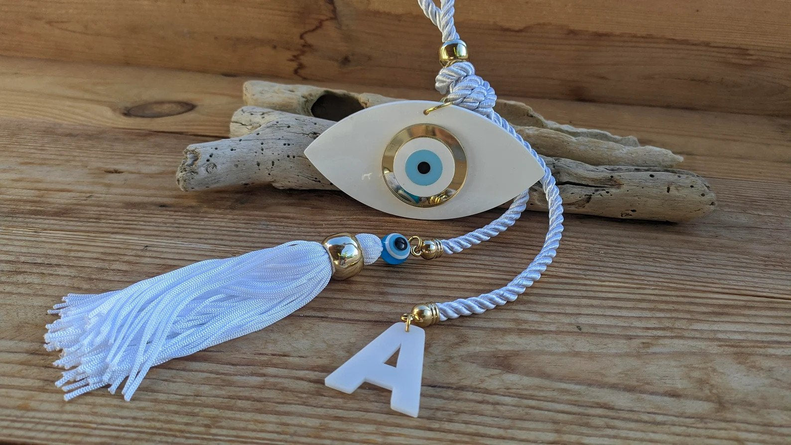 Beautiful handmade personalized evil eye wall hanging to protect your house. You choose your initial letter.