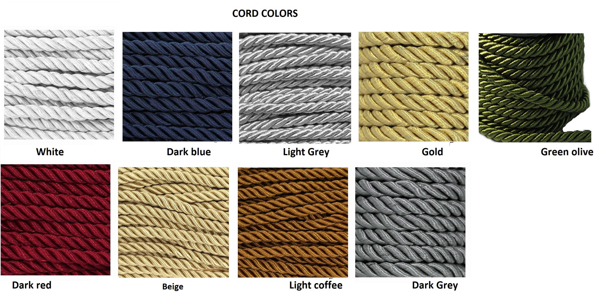 - Twisted 5mm rope available in 9 colors