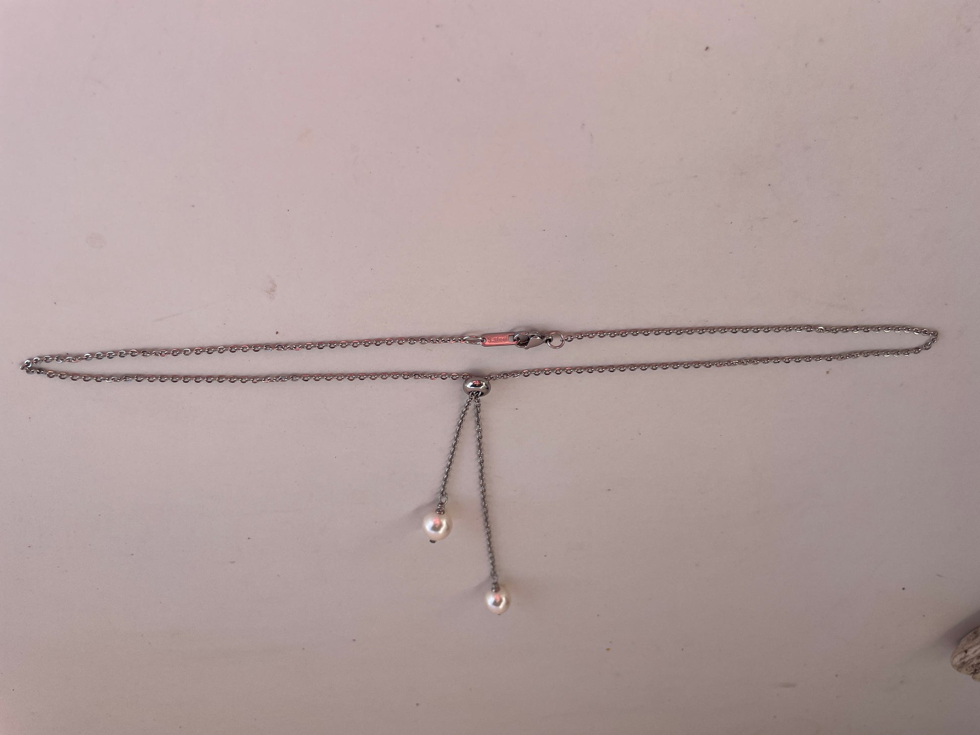 Stainless steel lariat necklace with Swarovski pearls