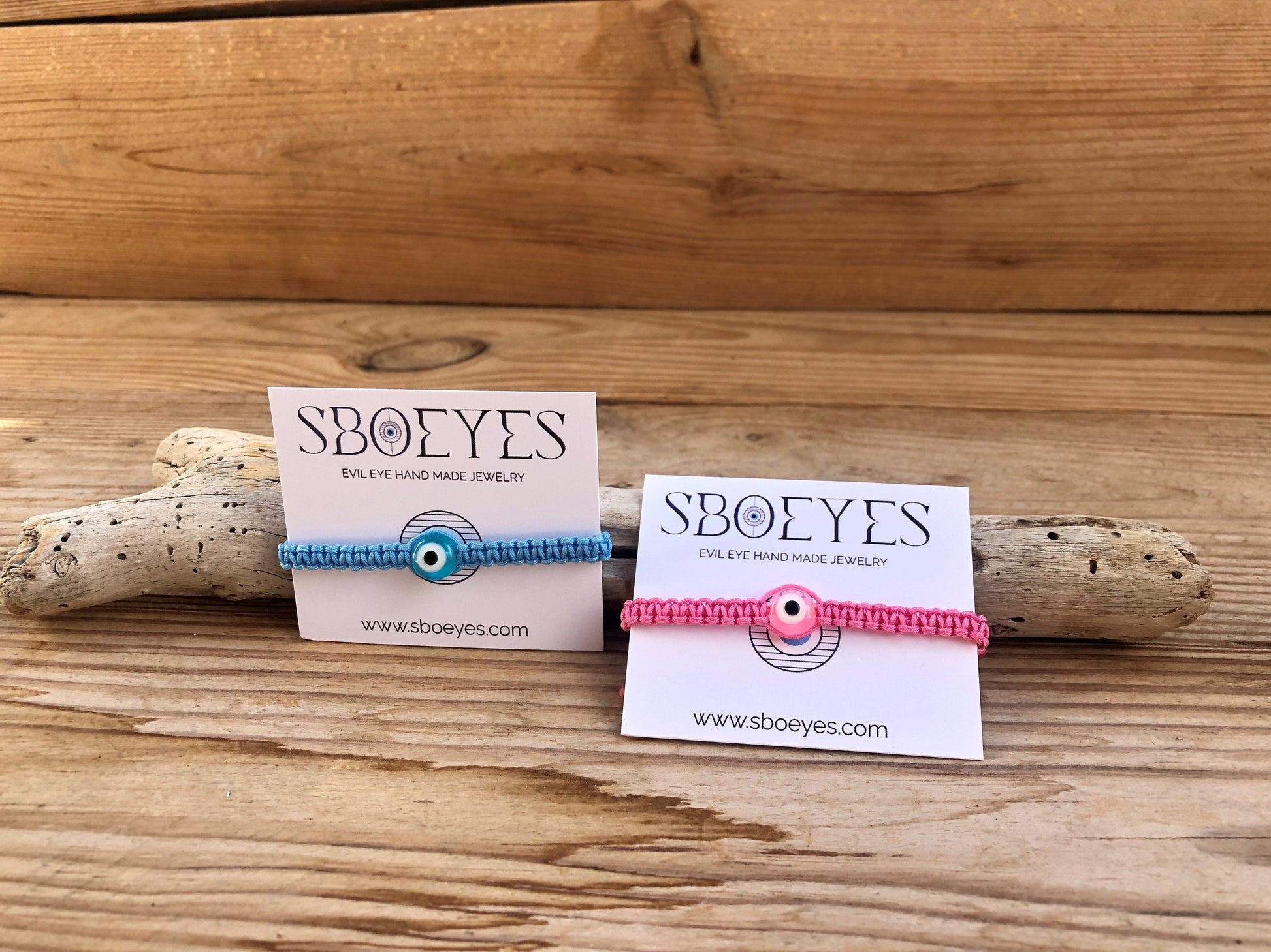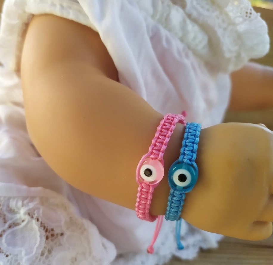 Evil Eye Macrame Baby Bracelet - New Born Gift - Pink, Blue & Fluo pink
