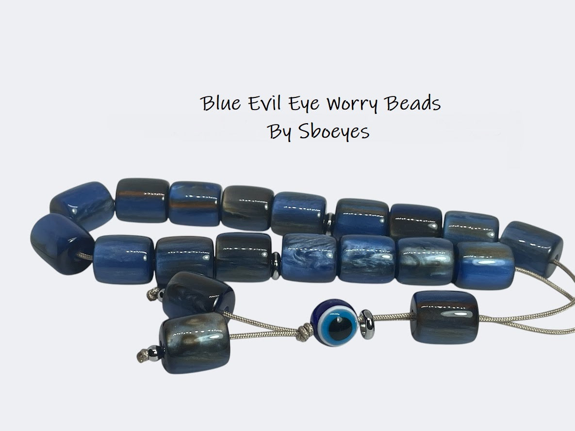 Evil Eye Blue Worry Beads - Greek Gift - Relaxation Beads