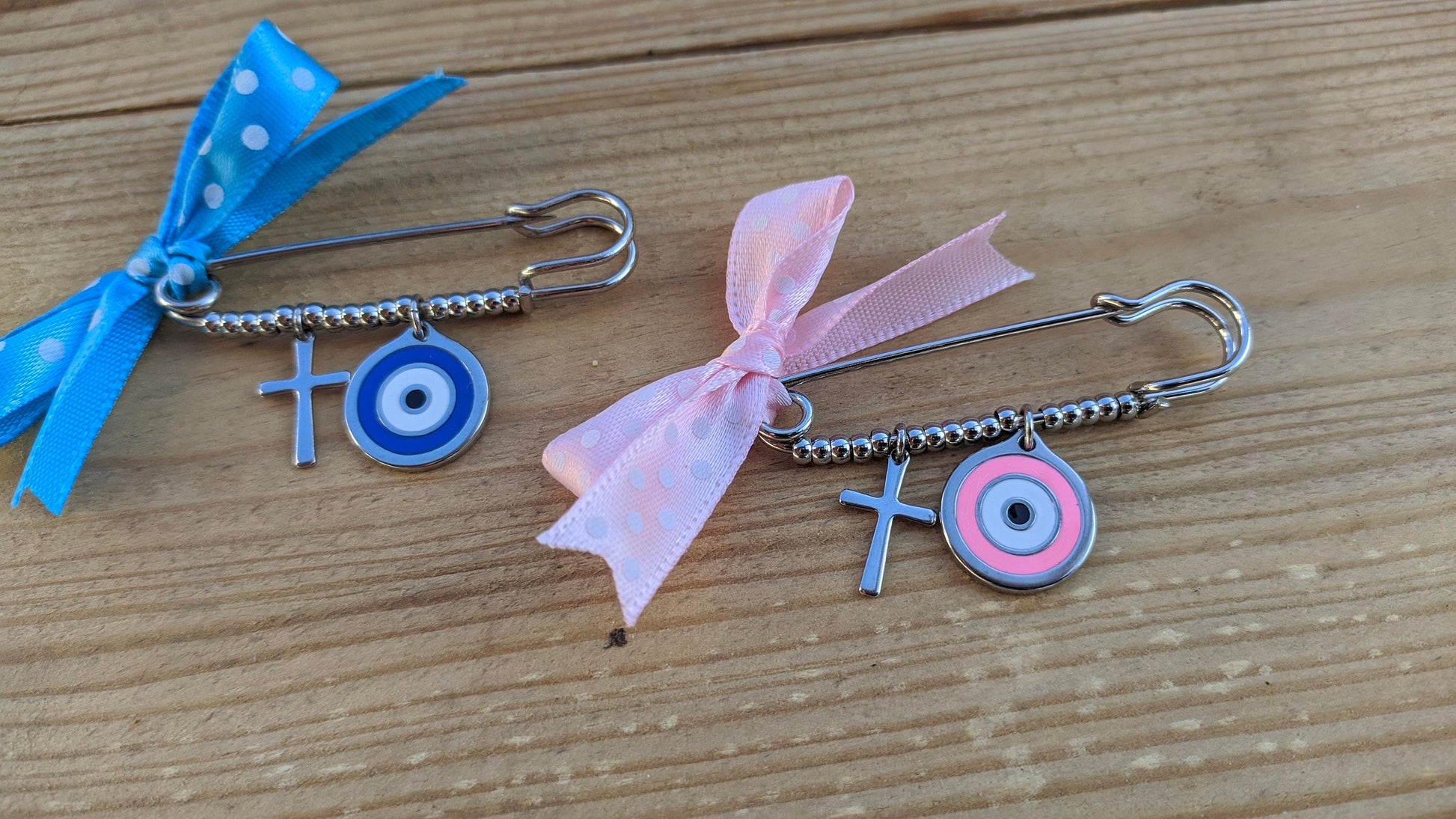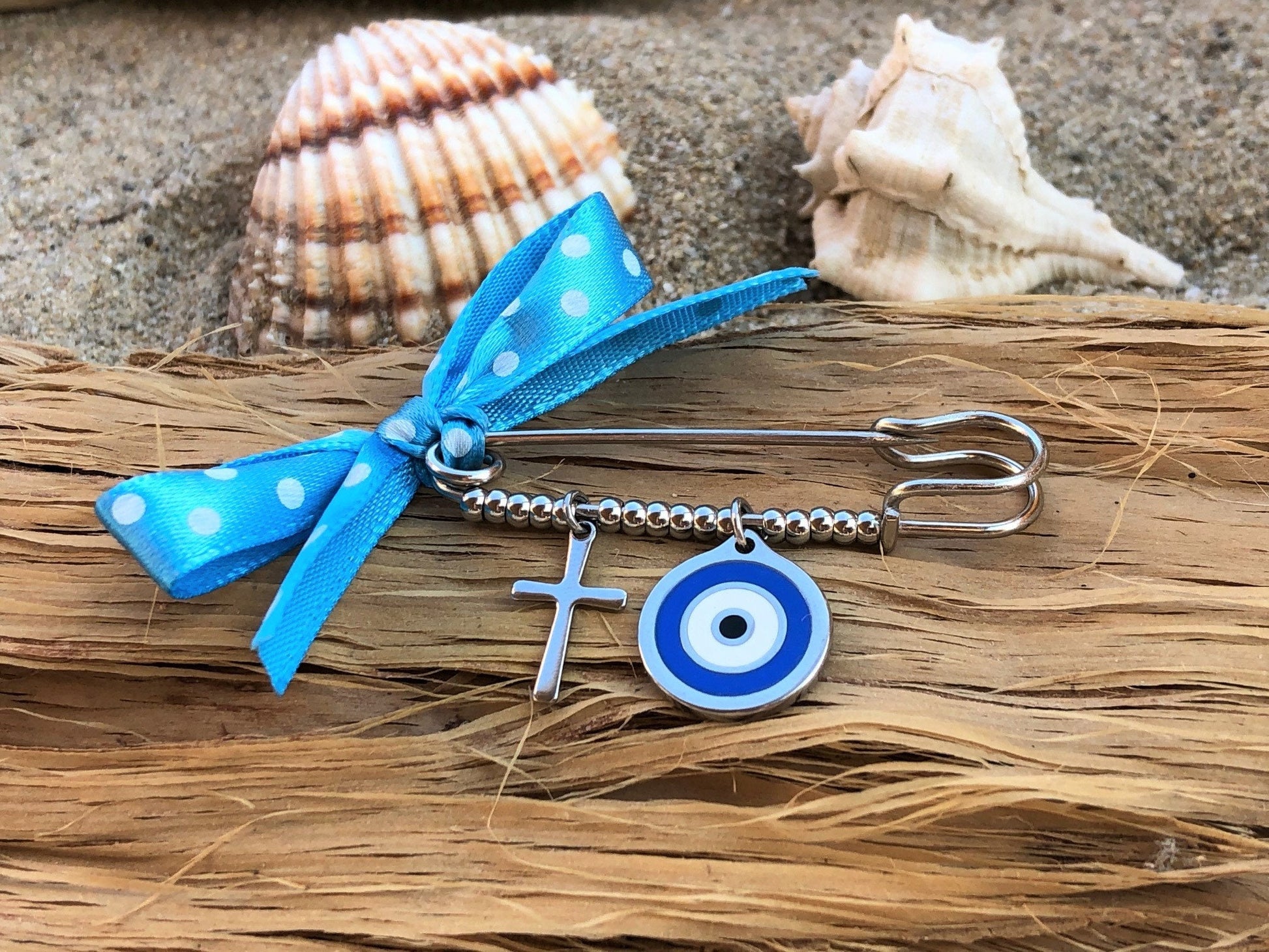 Evil eye cross safety pin, baby evil eye baby protection, baby gift,
