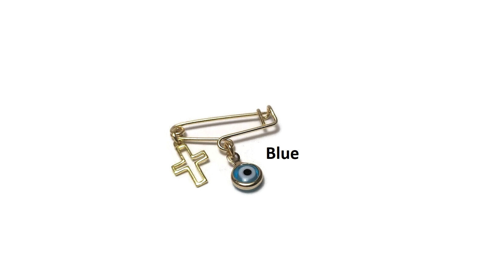 Evil Eye Cross Safety Pin - Baby Protection Jewelry