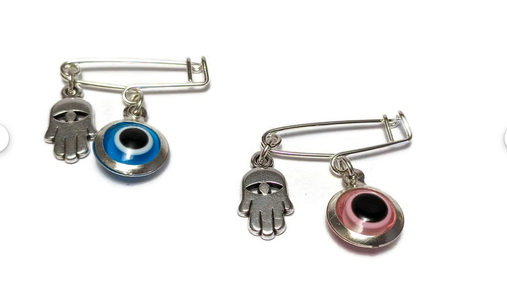 Evil Eye Hamsa Safety Pin - Baby Protection jewelry -