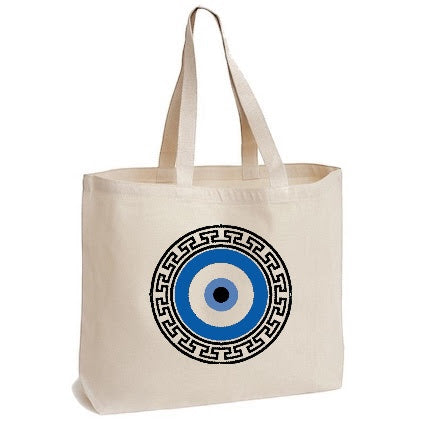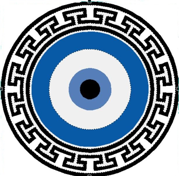 • Greek key design with an evil eye