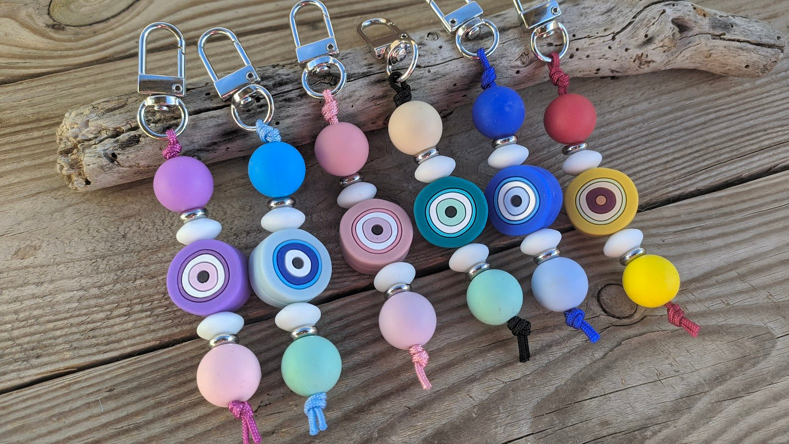 Evil Eye Silicone Keychain Bag Charm - Greek Gift - Handmade accessories
