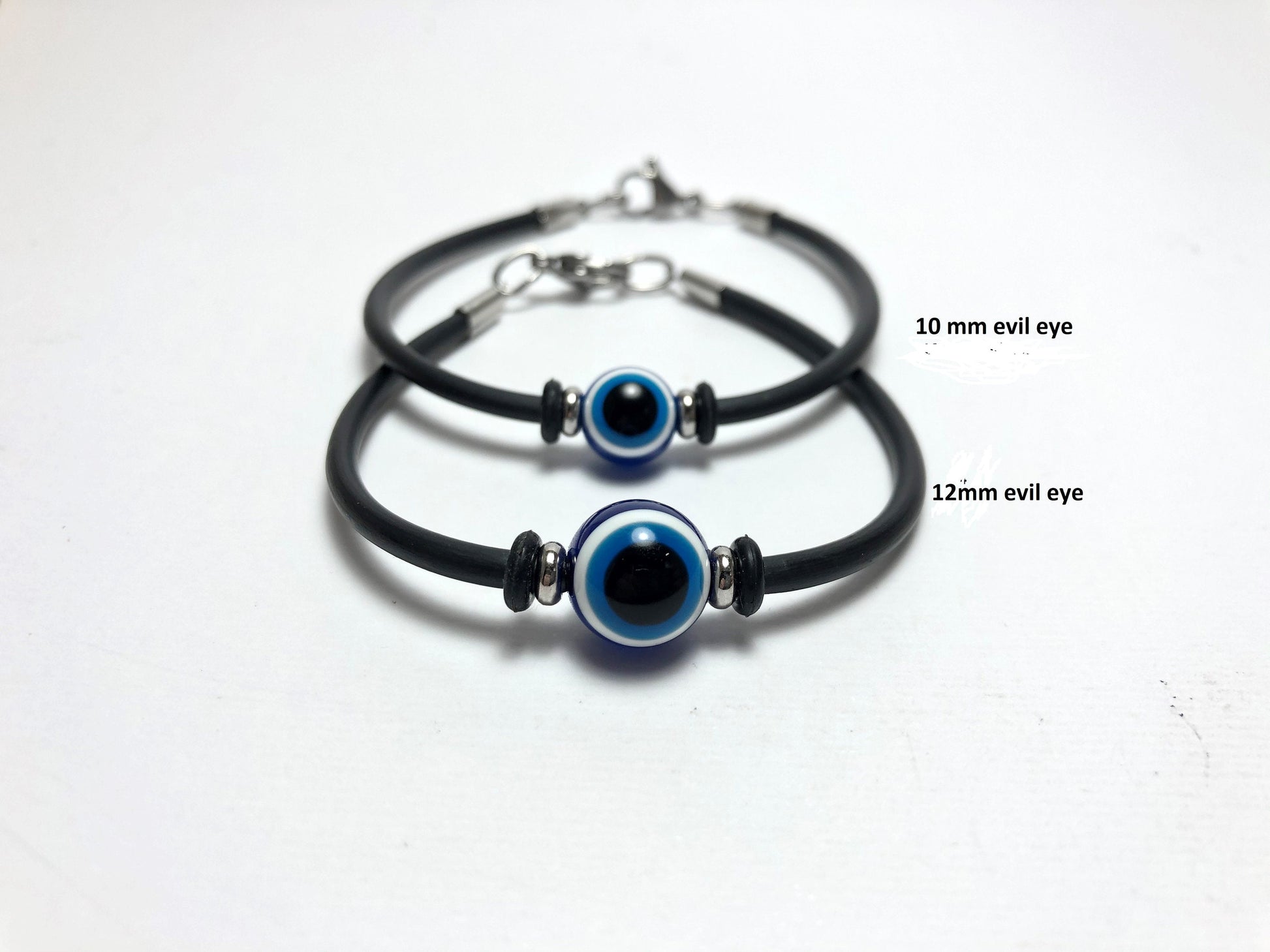 Bracelet shown on the first picture has been made with a 12mm evil eye bead.