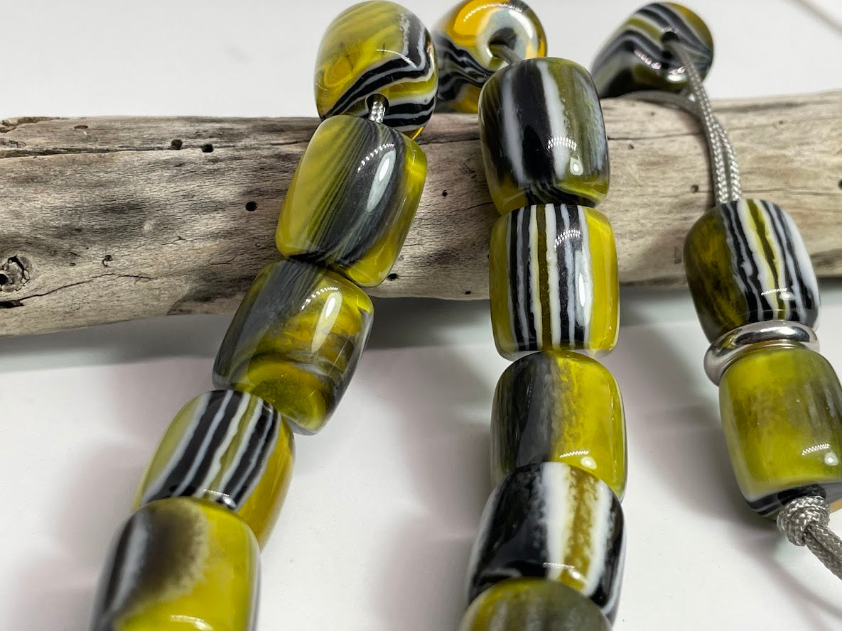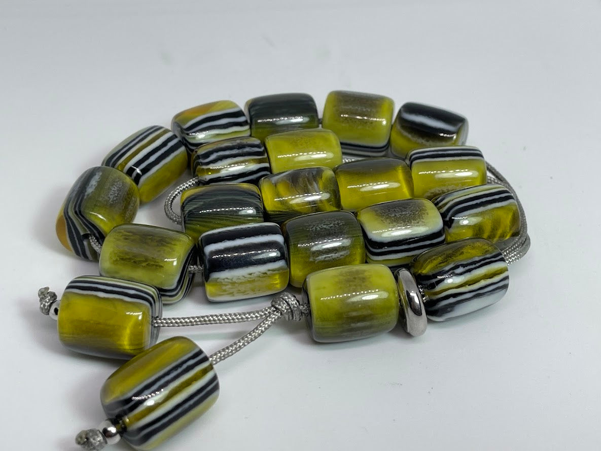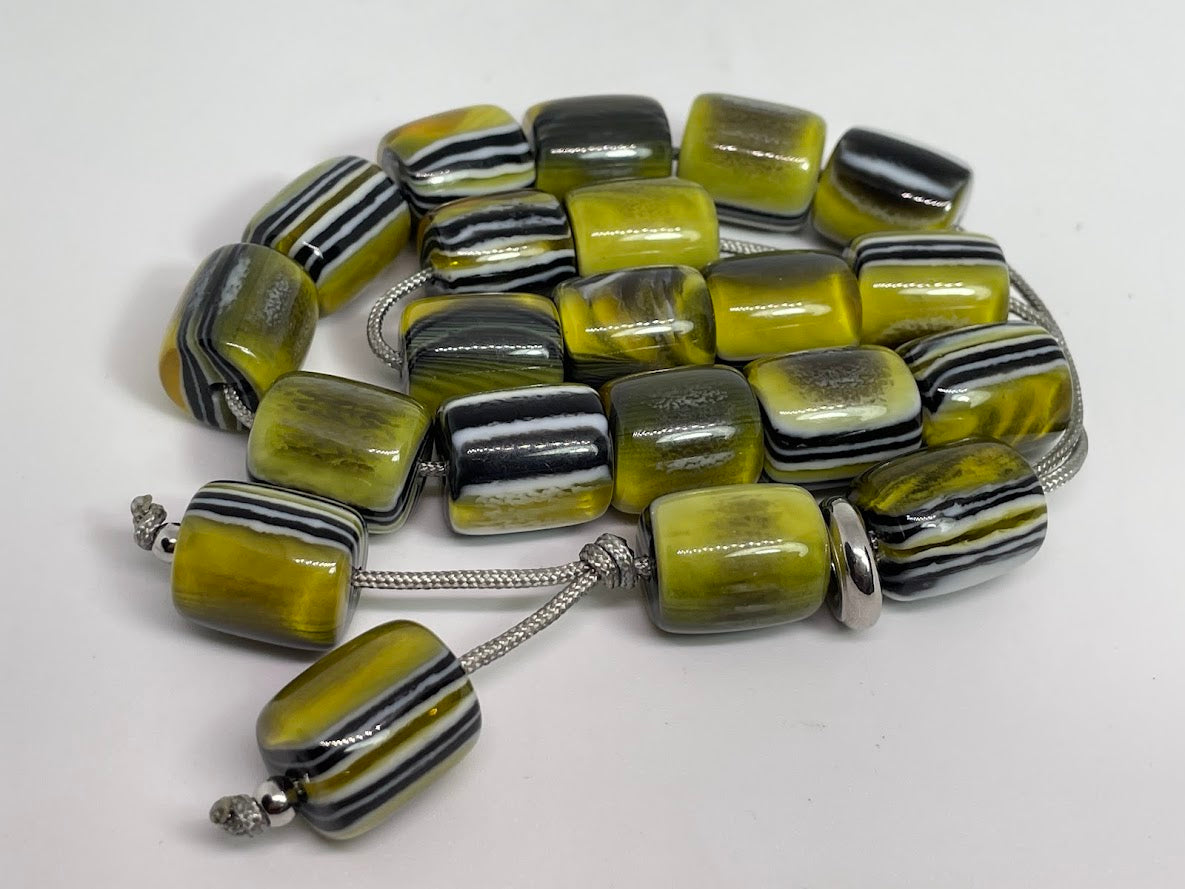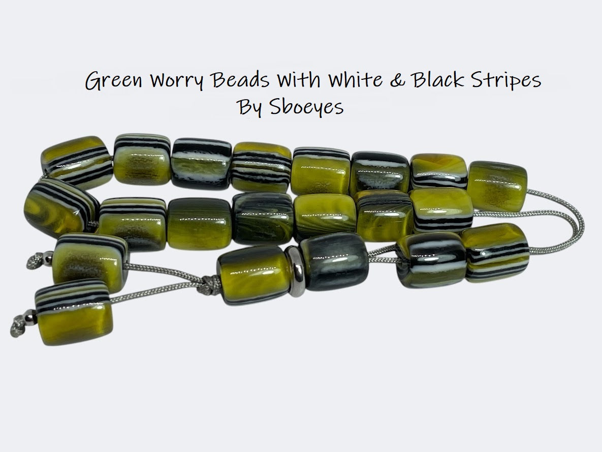 Green Worry Beads With White & Black Stripes - Greek Gift - Gift for Him