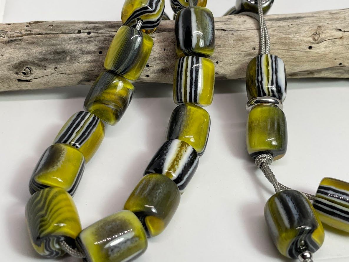 - Barrel Beads Size (approx.) : 16mmx14mm / 0.62"x0.55" - green and black